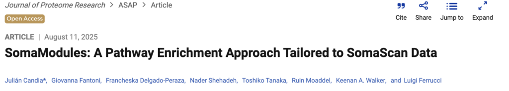SomaScanデータに特化したパスウェイ・エンリッチメント手法「SomaModules」を提案。既存の注釈済み遺伝子セットをもとに、強く相関するSOMAmerモジュールを貪欲法で抽出し、SomaModulesとして構築。MSigDBおよびMitoCarta最新データに基づく40,000以上のSOMAmer対応セットを公開。アルツハイマー病と身体機能の例で検証したところ、従来の遺伝子セットよりも有意に高いGSEAによるエンリッチメントを示し、手法の頑健性も確認。コード・データも公開し、他のカスタムセットへの応用も可能とする。